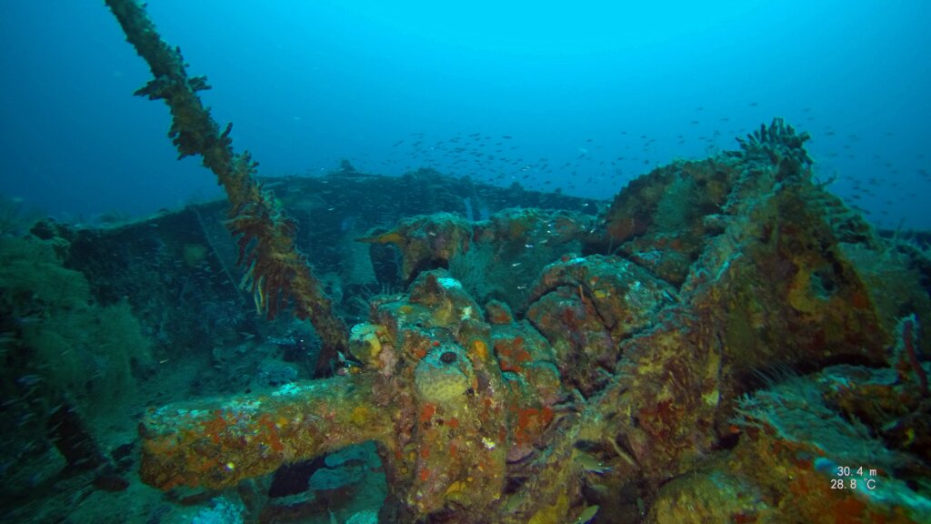 Matinée plongée sur l'épave du Nahoon pour les plongeurs de la famille. C'est un voilier "3 mâts" de 41m de long, construit en 1909, et immergé volontairement à 36m de profondeur pour y créer un récif artificiel depuis 1993. C'est une plongée "pleine eau" le long du bout. On peut voir la cale machine avec les 2 moteurs, la barre et une grosse murène verte ! La 2ème plongée de la matinée est sur le site des Petites Jorasses. Le spot est très beau avec beaucoup de poissons et de couleurs.